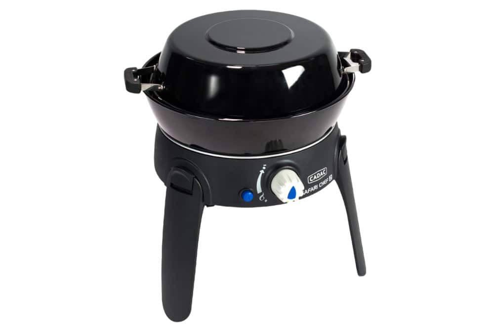 Deze lichte en compacte gasbarbecue biedt drie verschillende kookopties: een brander met pandrager, een BBQ-rooster en een deksel dat ook dienst kan doen als kookpan. Het rooster van de Safari Chef 30 (voorheen bekend als Safari Chef 2) is voorzien van de keramische GreenGrill-coating van CADAC, die zorgt voor een gezondere manier van koken. Onder het BBQ-rooster zit een geïntegreerde hittespreider die de warmte gelijkmatig verspreidt over het gehele oppervlak. De uitneembare vetpan vangt kookresten op en beschermt de brander tegen wind, zodat de vlam niet uitwaait.