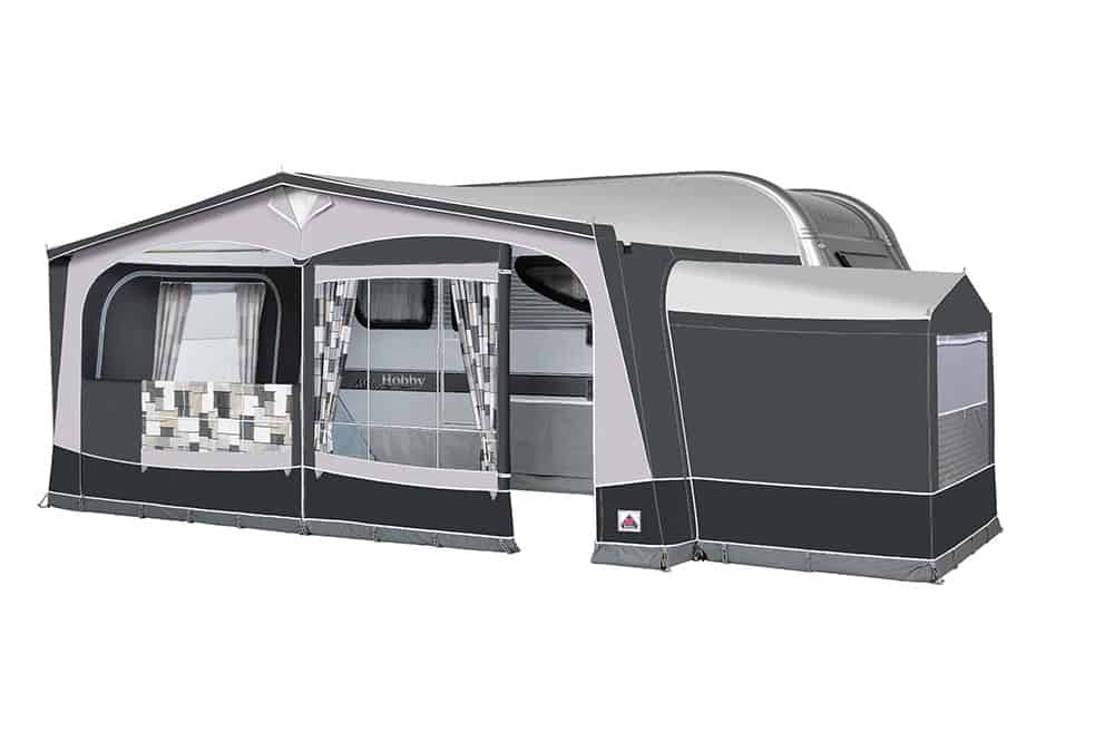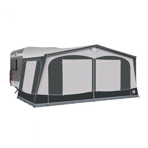 Dankzij de uitritsbare voor- en zijpanelen pas je de tent eenvoudig aan naar jouw wensen. De grote deuren, ramen en ventilatieopeningen met muggengaas zorgen voor veel licht en een prettig binnenklimaat. De Dorema Garda 240 is verkrijgbaar in verschillende maten en geschikt voor diverse caravan-omloopmaten. Voor nóg meer comfort is de voortent uit te breiden met accessoires, zoals een luifel, een uitbouw of een stormbandset.
