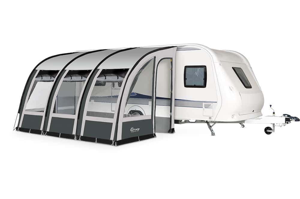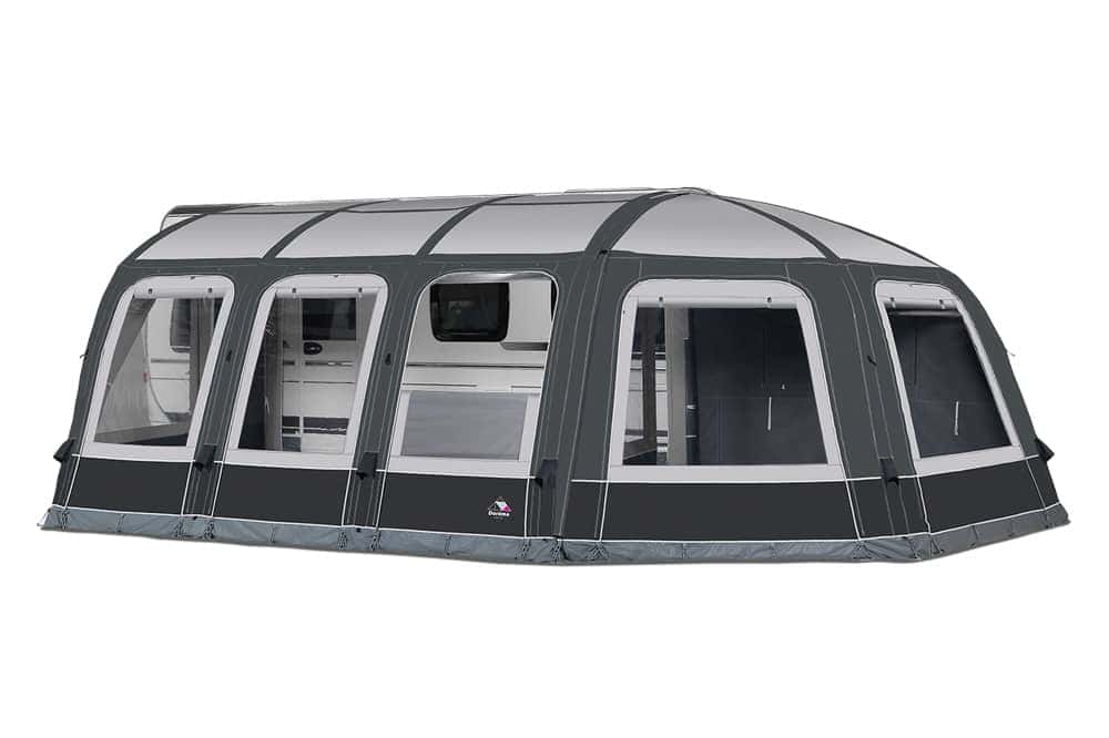De Dorema Airforce All Season is flexibel met verrassend veel ruimte. Geschikt voor een caravan met een railhoogte van 235-255 cm.