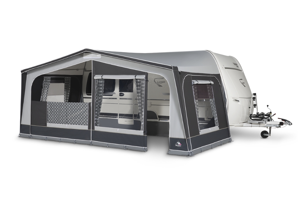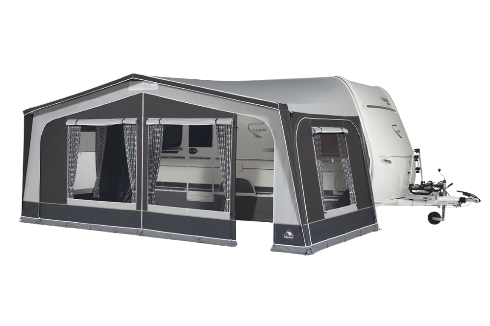 Als u een weekendje weggaat, een weekje eropuit trekt of voor langere tijd op pad bent en u zoekt een betaalbare voortent van hoogwaardige materialen, dan is de Dorema Monza De Luxe precies wat u nodig heeft. Deze voortent is zelfs geschikt voor een seizoenplaats. Dorema heeft de populaire Garda voortent een upgrade gegeven, wat heeft geresulteerd in de Monza. Deze voortent is uitgerust met extra sterk 240 g/m² Ten Cate All Season doek, dat niet alleen goed ademt, maar ook eenvoudig schoon te maken is. Verder heeft de Monza verzwaarde YKK-ritsen van 10 mm, een dubbelpins frame dat zorgt voor een strak en stabiel opzetten, en stijlvolle gordijnen die speciaal voor Dorema zijn ontworpen.
