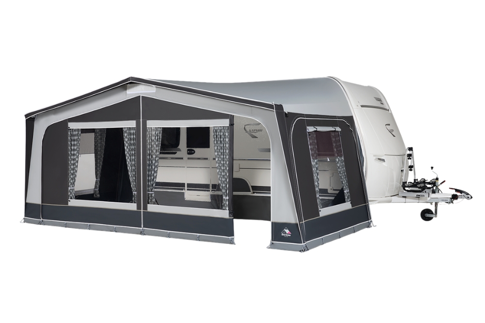 De Dorema Monza XL300 is dé ideale voortent, zelfs voor een seizoenplaats. Deze voortent is een verbeterde versie van de Garda, met sterk 240 g/m² Ten Cate All Season doek dat goed ademt en makkelijk schoon te maken is. De Monza XL300 heeft verzwaarde 10 mm YKK-ritsen, een stabiel dubbelpins frame en stijlvolle gordijnen speciaal voor Dorema ontworpen.