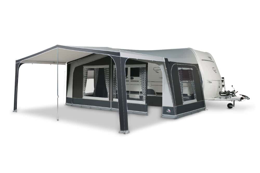 De Dorema Palma voortentluifel past aan bijna alle Dorema voortenten en Multi Nova’s vanaf modeljaar 2007. De Palma wordt door middel van een kunstof koppelprofiel aan de petluifel van de voortent bevestigd.