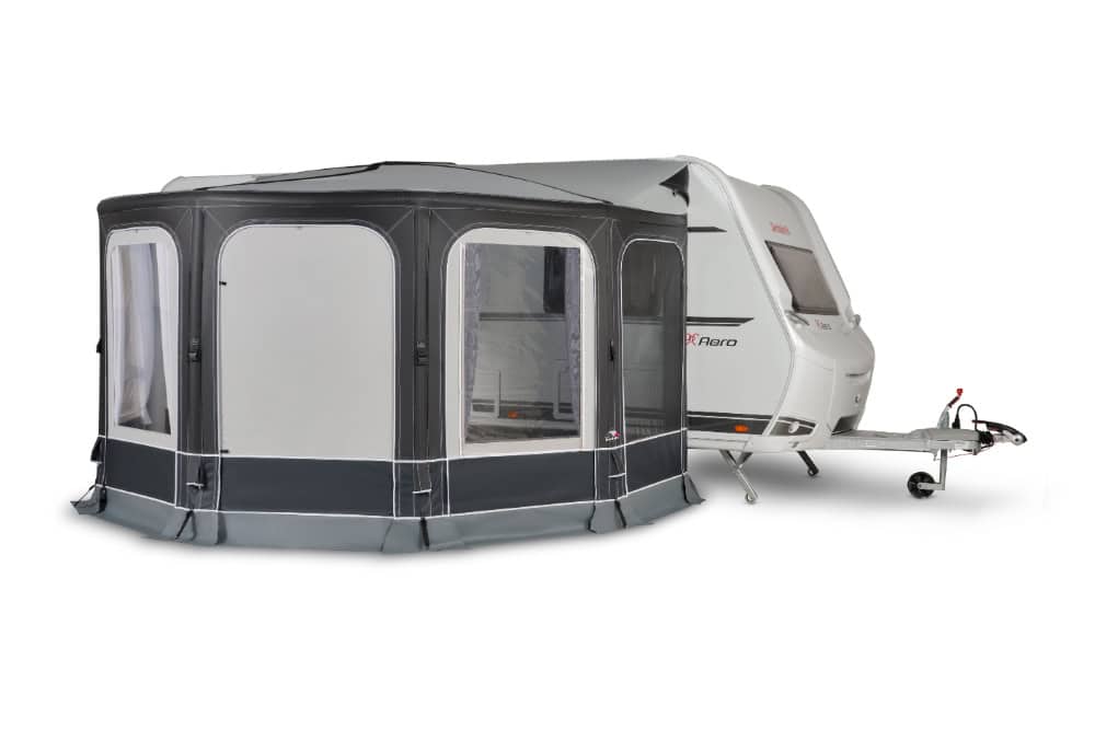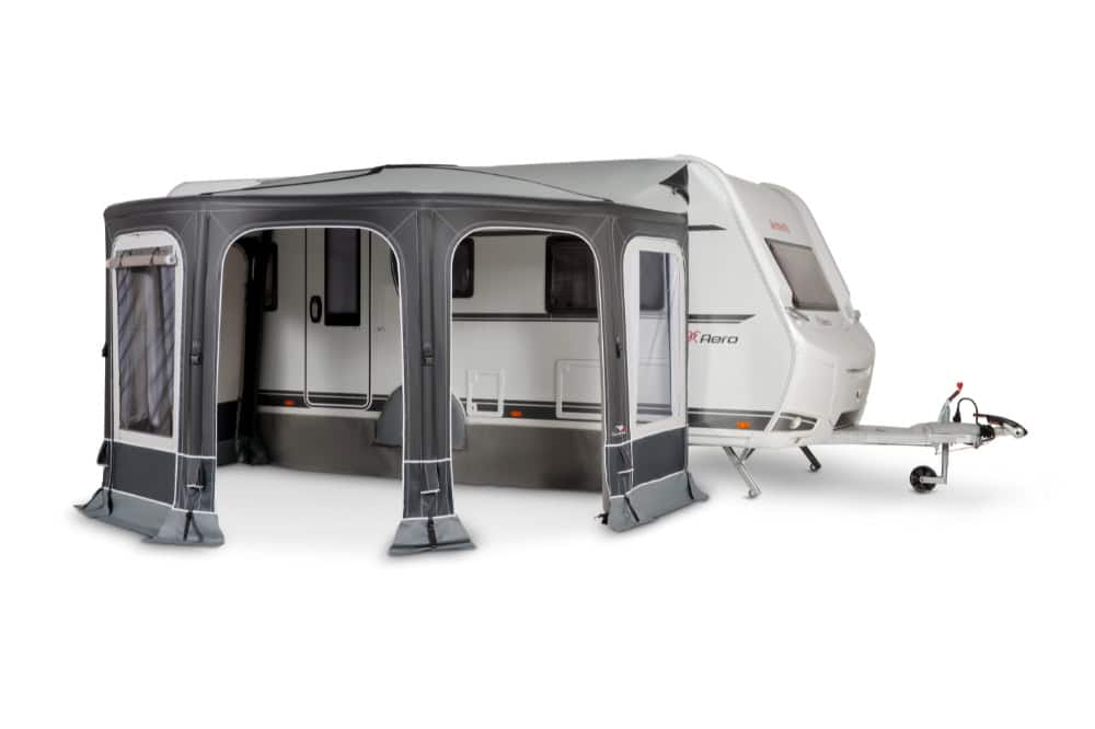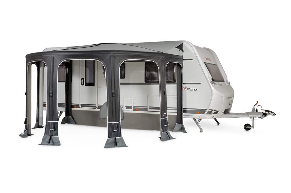 Deze St. Tropez Air luifel is zeer functioneel, het is tevens uit te breiden naar een complete voortent. Geschikt voor caravans met een railhoogte van 235-255 cm.