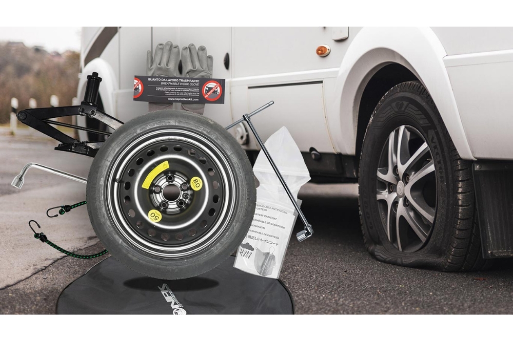 De Camper Reservewiel/Noodwiel-Kit bevat alles wat u nodig heeft voor een snelle en veilige wielwissel: