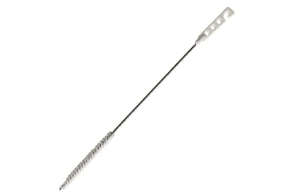 In de tentrail kunnen zich spinnennestjes, zand en andere soorten vuil ophopen, waardoor de tent niet zo gemakkelijk glijdt. Deze handige tentrailborstel is voor het reinigen hiervan, vóór het eerste gebruik na de stalling. Steek de tentrailborstel in de invoeropening van de rail waar je de voortent invoert en volg vervolgens de rail omhoog en omlaag. Op deze manier kun je vanaf de grond de hele rail schoonmaken, zodat al het vuil verwijderd wordt. Na het reinigen, de rail inspuiten met de droge Ritsspray. Het is aan te raden om geen siliconenspray te gebruiken, omdat dit de rail weliswaar vet maakt, maar ook zwarte vlekken kan veroorzaken op het aluminium en de pees van de tent. Een voorbeeld van een geschikte spray is de Sekalube droge ritsspray. Naast het reinigen van de tentrail, is de borstel ook geschikt om gemakkelijk de afvoerbuis van het chemisch toilet te reinigen.