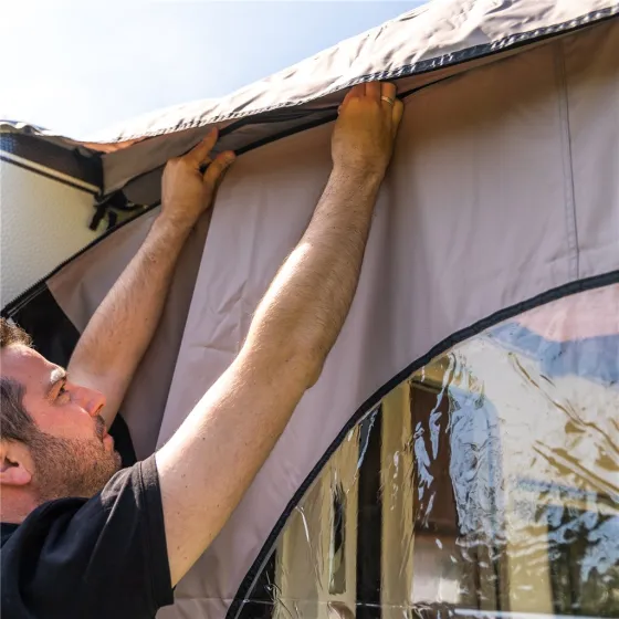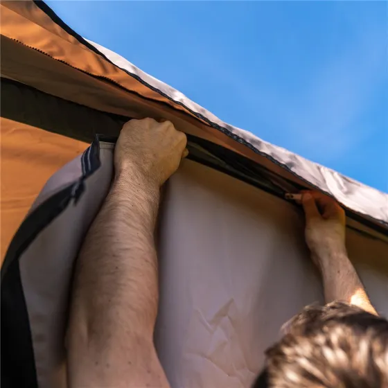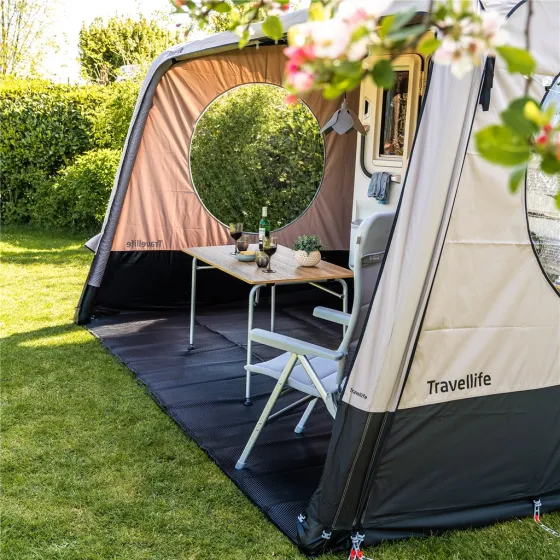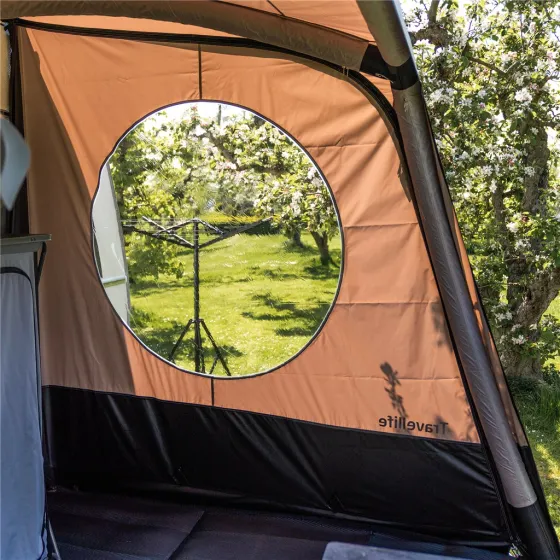 Kies voor de bijpassende zijpanelen om je Travellife Texel zonneluifel compleet te maken. Deze panelen worden als een set van twee verkocht: één voor links en één voor rechts. Bevestig ze eenvoudig aan de Texel zonneluifel met behulp van de ritsen. Beide panelen zijn voorzien van een groot rond kijkvenster, zodat er voldoende natuurlijk licht binnenkomt en je niets hoeft te missen van de omgeving. De zijpanelen bieden een aantal voordelen: ze creëren een volwaardige voortent, houden veel wind tegen en zorgen ervoor dat je ook op minder warme of regenachtige dagen comfortabel buiten kunt zitten. Bovendien zijn de zijpanelen waterdicht en Uv-bestendig, waardoor de kleur niet vervaagt door de zon.