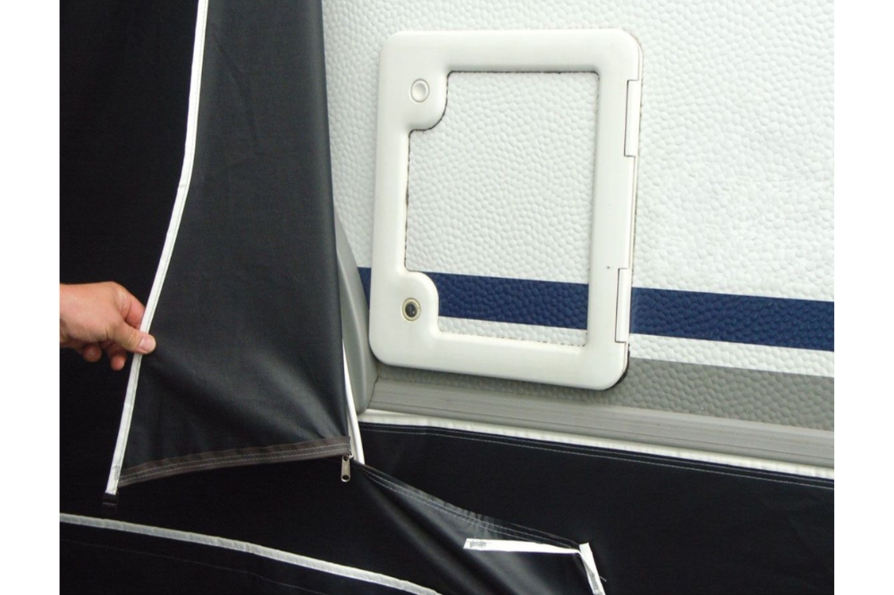 De Unico Bologna 280 is een stabiele voortent met een moderne, onderscheidende uitstraling. Hij blinkt uit in opzetgemak en flexibiliteit. Zodra u de wanden uitritst, verandert deze voortent in een royale, diepe luifel. De grote raampartijen, voorzien van een horizontale accentstrook, geven de Bologna 280 een strak uiterlijk. Dankzij de ritsbare blinderingskleppen kunnen deze ramen volledig worden afgesloten. De ronde vorm zorgt voor perfecte afwatering en de afneembare slikranden maken schoonhouden bijzonder eenvoudig.
