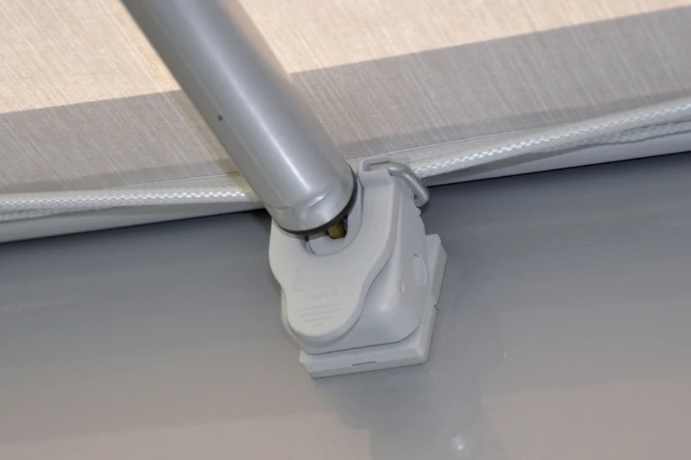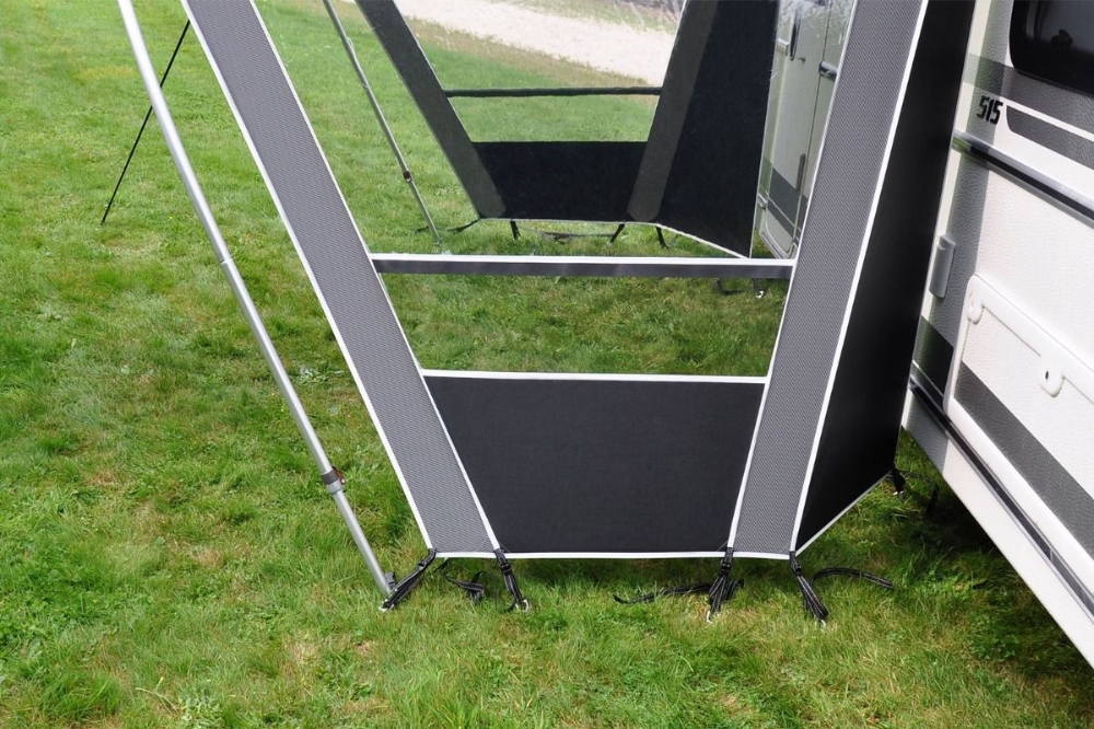 Ook het opzetten is eenvoudig en geschikt voor iedere kampeerder. Je schuift de pees van de luifel in de rail van de caravan of camper, plaatst de aluminium boogstok en rits deze in de tunnelsleuf. Daarna monteer je de dakliggers en staat de luifel stevig. Dankzij de meegeleverde Quick Lock-blokjes hoef je bovendien niet in de caravan te schroeven. Voor montage is een horizontale rail nodig op een hoogte tussen 240 en 255 cm. De minimale rail-lengte bedraagt 280 cm voor de Siena 350, 330 cm voor de Siena 400 en 380 cm voor de Siena 450.