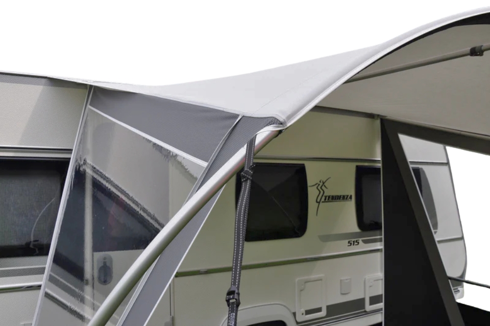De Unico Siena reisluifel is sportief, snel op te zetten en wordt standaard geleverd met zijwanden. Deze zijwanden zijn voorzien van ramen en zorgen niet alleen voor extra comfort, maar ook voor meer stabiliteit. Dankzij de kenmerkende ronde vorm van Unico heeft de Siena een uitstekende afwatering. Daarmee is deze reisluifel een mooi alternatief voor de bekende etui-luifels. De Siena is verkrijgbaar in drie breedtes: 350, 400 en 450 cm.